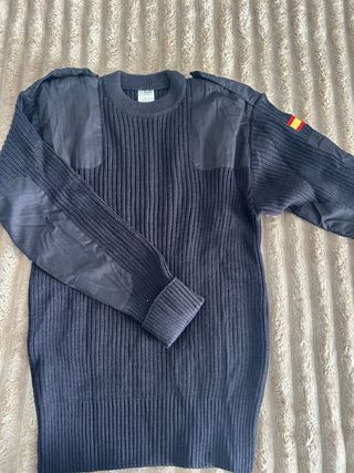 Jersey de lana grueso, ideal para climas fríos. - Diseño de cuello redondo. - Puños y cintura elásticos. - Parches en hombros y codos. - Bandera de España en manga.