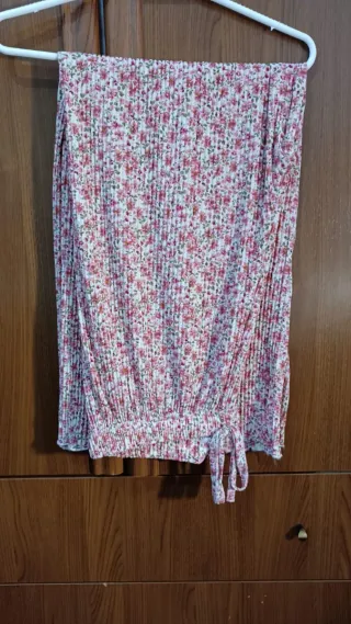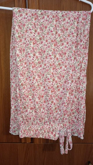 Falda con estampado floral y detalle de cordones. - Diseño plisado. - Cintura elástica. - Estampado de flores pequeñas.