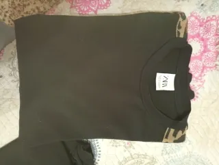 Como se ve en las fotos, en la parte del cuello está un poquito amarilla, y por la parte de atrás de un brazo tiene una diminuta manchita, por lo demás está en buen estado, talla M