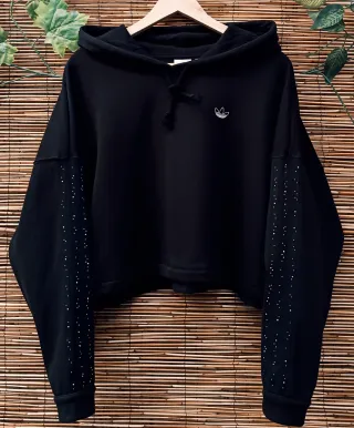 Sudadera corta de Adidas para mujer. - Diseño cropped. - Detalle de pedrería en las mangas. - Logo de Adidas bordado en el pecho.