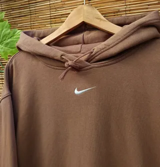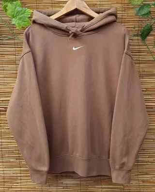 Sudadera con capucha de corte oversize y un discreto logo de Nike. - Color marrón. - Talla M.