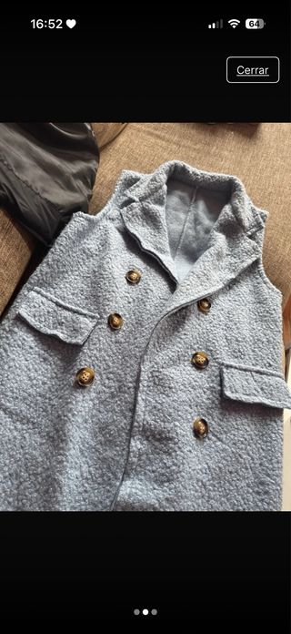 Chaleco largo con un diseño elegante y moderno. - Tejido texturizado. - Cierre de botones dorados. - Dos bolsillos frontales con solapa.