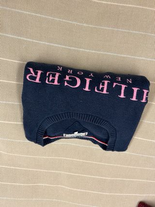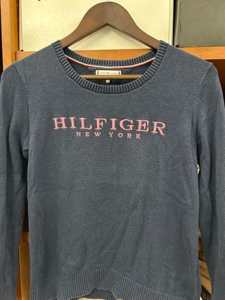 Jersey de punto azul marino de Tommy Hilfiger. - Diseño con logo Hilfiger New York en color rosa. - Cuello redondo y manga larga. - Puños y bajo acanalados.