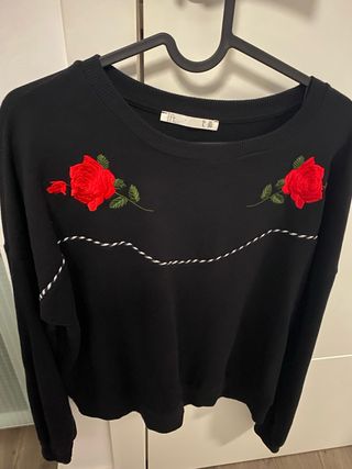 Sudadera negra fina con rosas bordadas