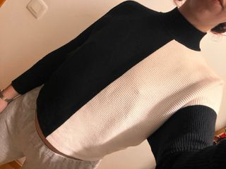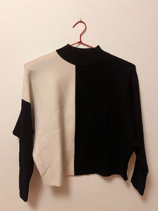 Jersey de punto con diseño bicolor y mangas tipo murciélago. - Cuello alto y redondo. - Estilo mitad de cada color Talla S ancha