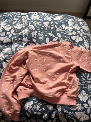 Sudadera rosa con corazones blancos