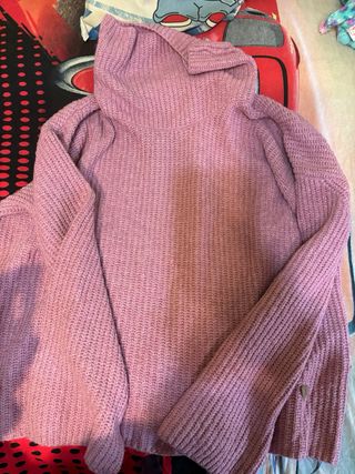 Jersey de punto en color morado, largo, perfecto para el frío. Muy poco uso - Cuello redondo. - Manga larga. - Bajo con aberturas laterales.