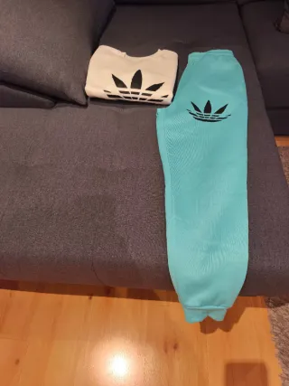 Conjunto de chándal sudadera y pantalón. Nuevo sin usar. - Sudadera blanca. - Pantalón color turquesa.