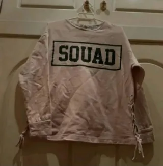 Sudadera de manga larga con un diseño moderno y detalles únicos. - Estampado frontal SQUAD. - Cordones laterales ajustables. - Puños y bajo elásticos.