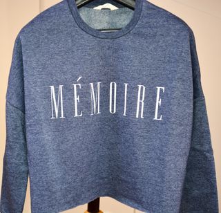 Sudadera azul con texto MÉMOIRE