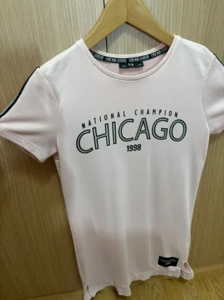 Vestido/sudadera rosa C&A Chicago National Champio - Diseño National Champion Chicago 1998. - Detalle de raya negra en las mangas. - Pequeña etiqueta negra con Chicago 1998 en el bajo.