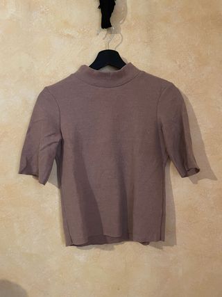 Jersey marrón de cuello alto y manga corta