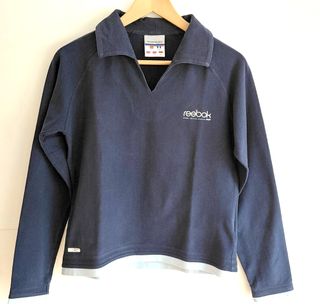 Sudadera de manga larga con cuello tipo polo y escote en V. - Logo de Reebok bordado en el pecho. - Detalle de doble capa en el bajo. Color azul