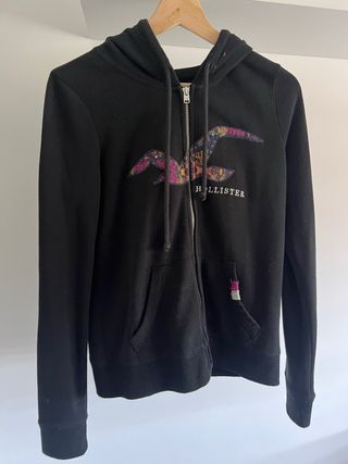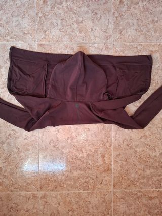 Sudadera marrón con capucha y cremallera. Está en buen estado. - Tiene bolsillos laterales. - Tiene agujeros para meter el pulgar. - La capucha es ajustable.