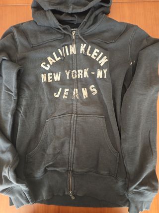 Sudadera Calvin Klein original con cremallera talla XL gris, tiene una pequeña manchita en un lado ( ver foto) Largo: 68cm Axila: 58 Mangas: 70
