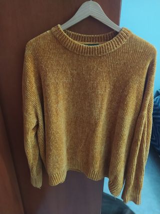 Suéter de punto de Primark en color mostaza. Es de manga larga y tiene un corte cropped. - Tejido suave y agradable al tacto. - Ideal para otoño/invierno. Talla L. Material: poliéster.