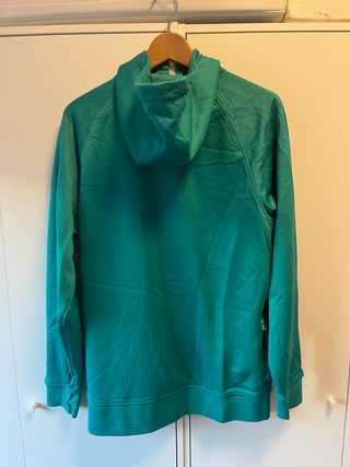 Preciosa sudadera con capucha de color azul cielo. Está en estado y es perfecta para cualquier ocasión. ̧ - Tiene un diseño minimalista con un logo discreto. - La capucha es cómoda y cálida. - ¡OJO! Que tiene unas manchas delanteras! remarcada en la foto. (imagen 2!!!!) tiene 3 o 4 manchas marrones. Sudadera de color verde lisa. Comoda. Estado (se nota el desgaste)