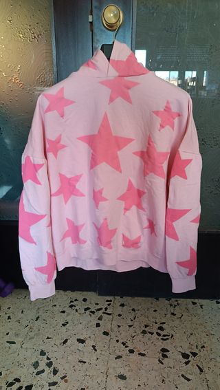 Sudadera de algodón con capucha, color rosa con estrellas, talla única (grande). Merchandasing oficial del Tour .mp3 de Emilia. Usada 1 vez.