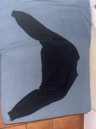 Sudadera negra larga tipo vestido talla XXL. Está en buen estado. - 100% poliéster. - Lavar del revés. - Lavado suave. - Secado en secadora a baja temperatura. - Limpieza en seco.