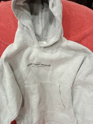 Sudadera gris de Zara para chica, con un diseño moderno y cómodo. - Talla 11-12 años (152 cm). - Fabricada en Pakistán. - Estampado CHOOSE FUN y TODAY MAGICAL en la parte delantera.