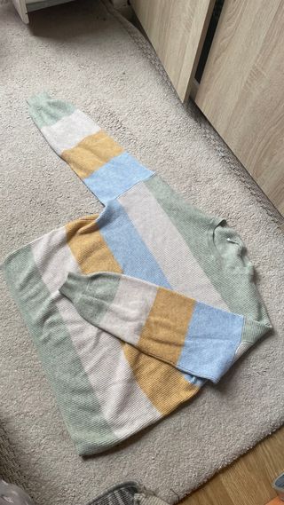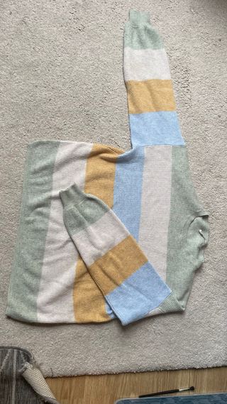 Precioso jersey de lana con un diseño de rayas verticales en tonos pastel. Es una prenda cómoda y con un estilo único. - Diseño de rayas. - Material de lana.