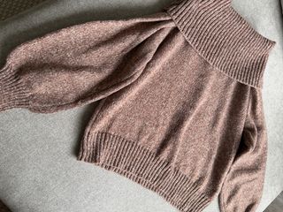 Jersey de punto con diseño de hombros caídos. - Tejido suave y confortable. - Mangas abullonadas con puño.