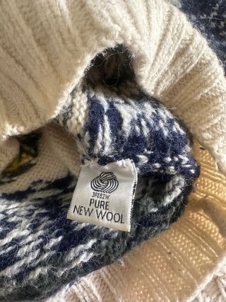 Jersey de lana pura hecho a mano en Perú – talla S/M – estilo vintage invierno Precioso jersey de lana pura, muy calentito y con un bonito diseño invernal. Perfecto para invierno y para combinar con vaqueros. Estilo acogedor tipo vintage / nórdico. 🧶 Detalles: • Lana pura • Hecho a mano en Perú • Diseño de invierno motivos esqui • Muy cómodo y calentito 📏 Medidas: • Largo: 63 cm • Ancho (axila a axila): 52 cm 🧼 Cuidado: • Lavado a mano 👕 Talla aproximada: S / M (revisar medidas)