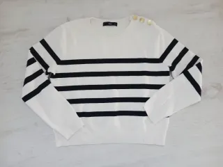 Jersey de rayas estilo marinero de Mango. Un clásico atemporal para cualquier armario. - Diseño de rayas horizontales. - Detalle de botones dorados en el hombro.