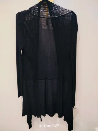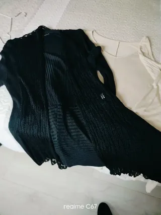 Conjunto de dos prendas de vestir. - Chaqueta negra larga de tejido calado con detalles de encaje mezcla de algodón Largo 82, sisa a sisa 48 cm - Blusa de manga larga como algodón finita con cuello redondo y mucho vuelo abajo. Largo 80,sisa a sisa 64 aprox. Pueden hacer más productos y crear otro lote y se ahorra gastos de envío. NO HAGO ENVÍOS POR ONTIME NO SON FIABLES NI SEGUROS. PREFIERO INPOST QR
