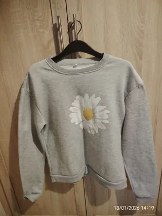 Sudadera cómoda con un bonito estampado de margarita en la parte delantera. - Diseño de cuello redondo. - Manga larga. - Bajo elástico.