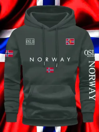 Sudadera con un diseño inspirado en Noruega y la ciudad de Oslo. - Estampado Norway en el pecho. - Bandera de Noruega en la manga y en el pecho. - Detalle Oslo en el pecho. - Diseño Norway en la manga.