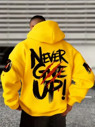 Sudadera deportiva con un diseño llamativo en la espalda. - Estampado Never Give Up en negro y rojo. - Mangas con detalles gráficos. - Capucha integrada.