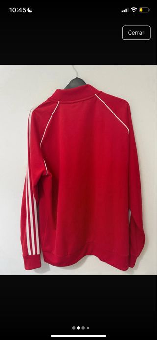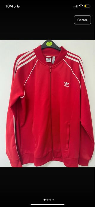 Sudadera deportiva Adidas con el icónico diseño de tres rayas. - Cierre completo con cremallera. - Bolsillos laterales. - Logo de Adidas bordado en el pecho.
