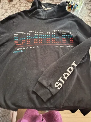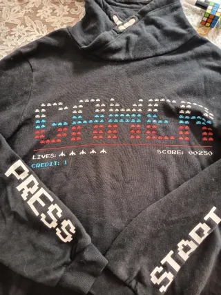 Sudadera con un diseño inspirado en los videojuegos clásicos. - Estampado frontal con temática de Space Invaders. - Detalle de Press Start en las mangas. - Cuello alto.