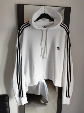 Sudadera corta con capucha de mujer de Adidas Originals en color blanco con las icónicas tres rayas negras en las mangas y el logotipo bordado en el pecho. Talla 46 europea oversize Capucha forrada Confeccionada principalmente con algodón Un solo uso,lavada y planchada Prácticamente nueva #adidasoriginals #adidasoriginal #adidas #adidasoriginalswoman#adidascropped #croppedhoodie #croppedhoodieadidas #sudaderacroppedadidas #croppedshortadidas#adidasshortcropped#adidascroppedhoodie #sudaderacapuchashortadidas#adidasshort