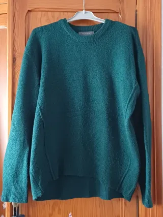 Jersey de punto fino con un diseño moderno y elegante. Su color verde oliva lo hace muy versátil. - Cuello en pico. - Manga 3/4 - Tejido con textura.
