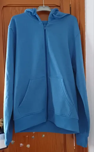 Sudadera con capucha y cremallera completa. - Bolsillo frontal tipo canguro. - Puños y bajo elásticos. -Usada pero en buen estado