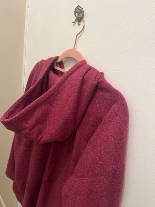Forro Polar de muy buena calidad con capucha y bolsillo frontal. Tejido suave y cómodo. Muy calentito y capucha grande Color rosa frambuesa muy bonito