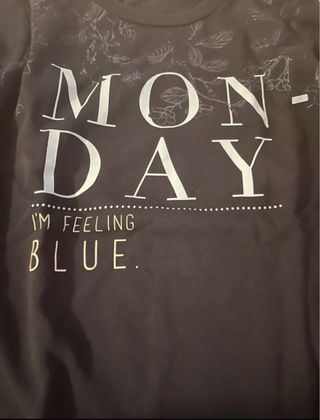 Sudadera azul marino con estampado frontal. - Diseño Monday Blue. - Estampado floral sutil en cuello y hombros.