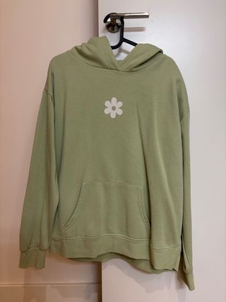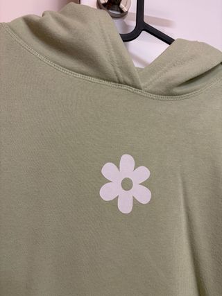 Sudadera verde con flor blanca
