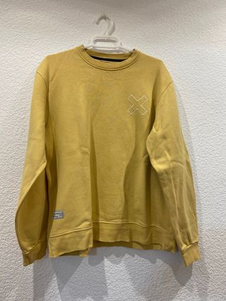 Sudadera de manga larga en color amarillo. - Diseño con logo en forma de X en el pecho. - Etiqueta decorativa en el lateral inferior.