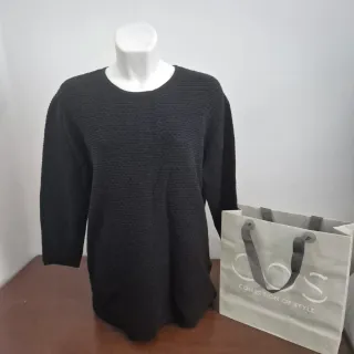 Sudadera de la marca COS en color negro. Presenta un diseño texturizado que le da un toque moderno. - Cuello redondo. - Tejido con relieve.