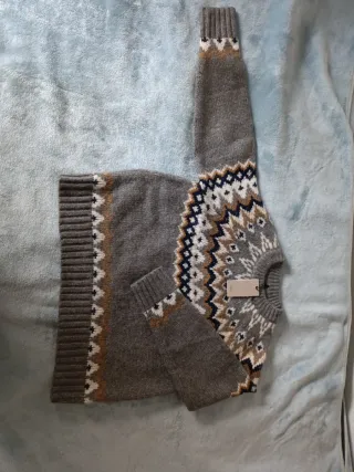 Jersey de punto con diseño Fair Isle en tonos grises y multicolor. Ideal para un estilo casual. - Cuello redondo. - Manga larga. - Puños y bajo acanalados.