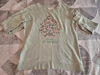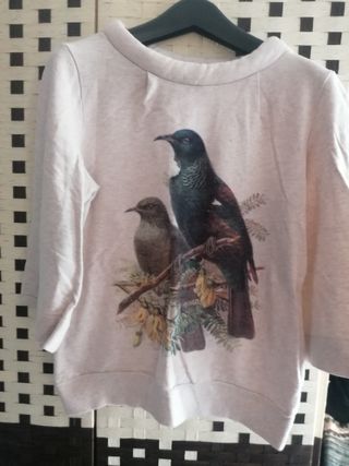 Sudadera de media manga en color beige con dibujo de pájaros, bastante cortita. Un básico cómodo para el día a día. Cuello redondo mullidito. Envíos Wallapop o correos certificado previo pago. Escucho ofertas razonables. Descuento 1€ por cada cosa que añadas de mi perfil. Y siempre regalito!