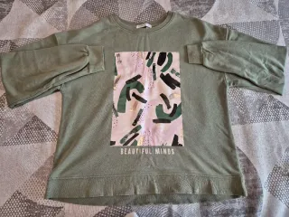 Stradivarius Hoodie/Sudadera de mujer, verde khaki. Estampado dibujo y "Beautiful Minds" por delante. Muy aesthetic. Talla M. Como nueva.