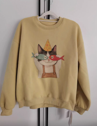 Sudadera amarilla con estampado de gato