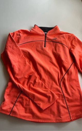 Sudadera deportiva de manga larga con cuello alto y media cremallera. Es una M pero sienta como una S. - Diseño con ribetes negros. - Logo de la marca en el pecho.