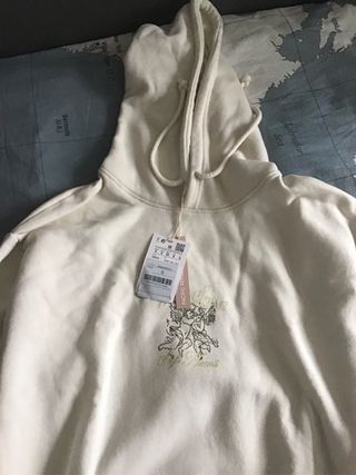 Sudadera de Zara para niña. - Color beige. - Talla S (equivalente a 36 / 8). - Fabricada en Marruecos.
