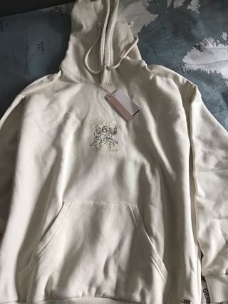 Sudadera con capucha de Bershka en color blanco. - Capucha con cordones ajustables. - Puños y bajo elásticos. - Bolsillo tipo canguro.