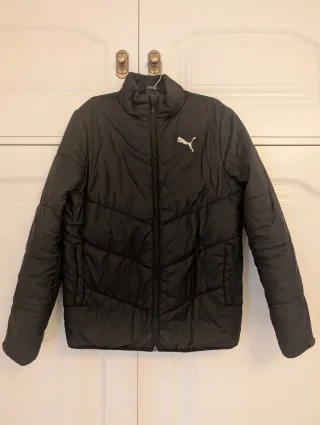 Vendo chaqueta acolchada de la marca PUMA en color negro, ideal para el día y para el frío. Está en perfecto estado, sin ningún desperfecto, muy ligera y cómoda pero abriga bien. Talla: 13-14 años ( pero es grandecita, sirve para niños de 15-16 sin problemas) Detalles: Cierre de cremallera frontal completo. Bolsillos laterales funcionales. Cuello alto para proteger del frío.